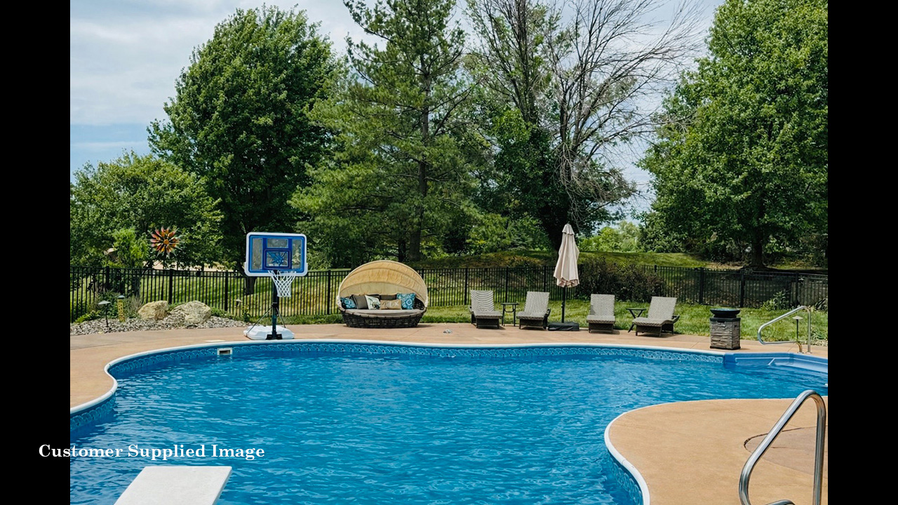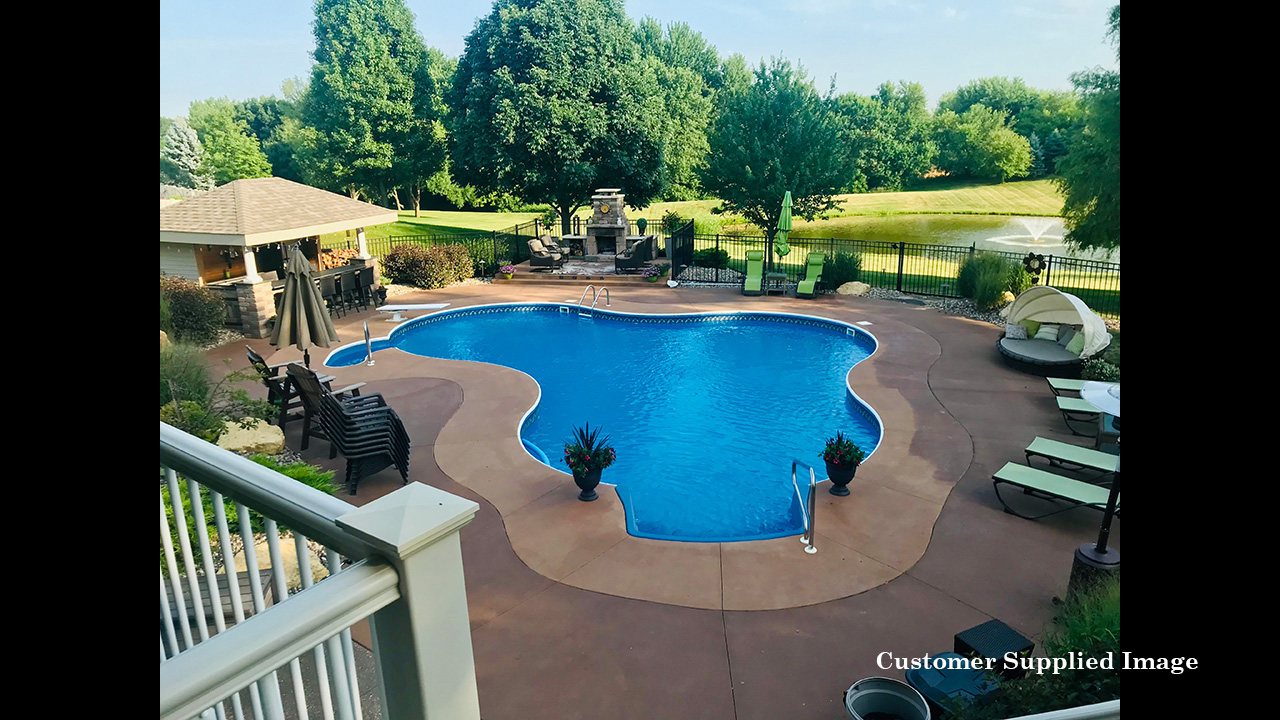 a custom-designed inground pool (new liner in 2019) with walk-out steps in the deep end, a
